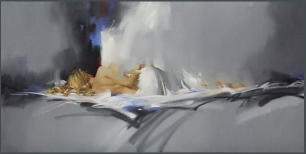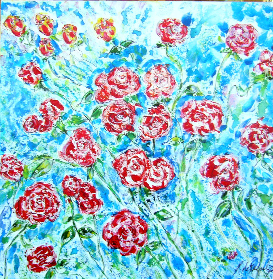 “In Love,” Acrylic by Andrea de Kerpely-Zak known for her floral artwork.